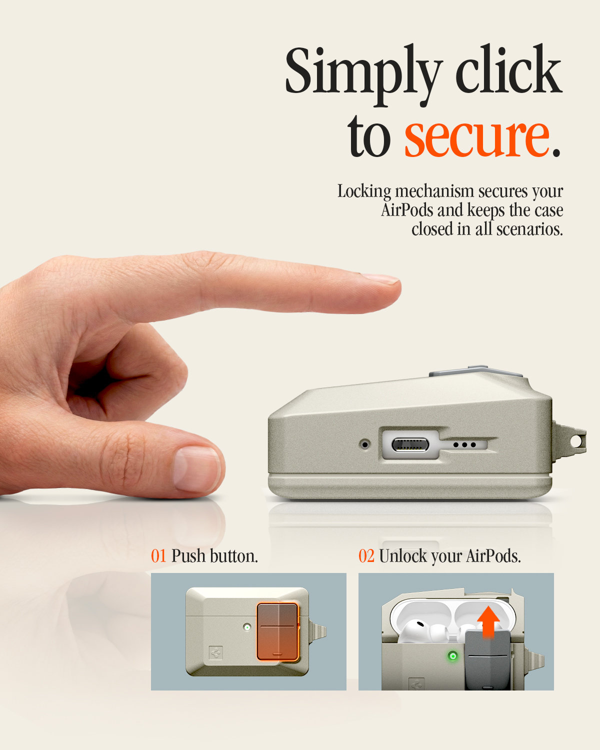 Ochranné pouzdro Spigen Classic LS pro AirPods Pro 3 spojuje retro vzhled inspirovaný klasickým Macintosh designem s praktickými detaily pro každodenní nošení, bezpečné zavírání i pohodlné nabíjení.